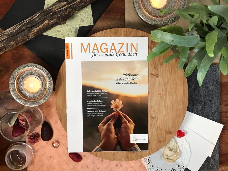 In diesem Beispiel zeige ich mein eigenes fotografiertes Mockup für ein Gesundheitsmagazin. Die Komposition an sich ist visuell ansprechend und sorgfältig gestaltet – aber hier ist der entscheidende Punkt: Das Magazin muss im Mittelpunkt stehen.