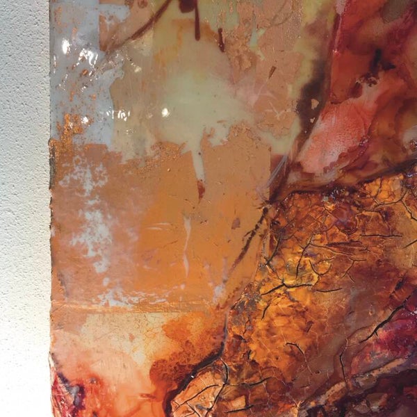 • Technik: Mixed Media (Acryl, Aquarell, Alkohol-Tinte, Gips, Roségoldfolie)